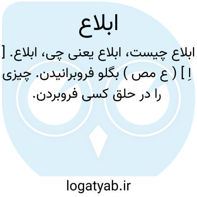ابلاع. [ اِ ] ( ع مص ) بگلو فروبرانیدن. چیزی را در حلق کسی فروبردن.