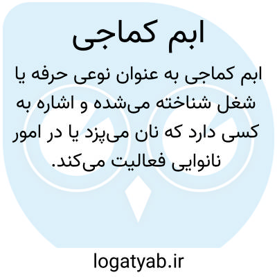 واژه «ابم کماجی» در منابع فارسی به دو معنی ذکر شده است. معنی اول آن به خبازی مربوط می‌شود؛ به این معنا که «ابم کماجی» به عنوان نوعی حرفه یا شغل شناخته می‌شده و اشاره به کسی دارد که نان می‌پزد یا در امور نانوایی فعالیت می‌کند. این واژه در متون تاریخی و فرهنگ‌های لغت قدیمی به‌کار رفته و نشان‌دهنده جایگاه اجتماعی و اقتصادی فرد خباز در جامعه بوده است.