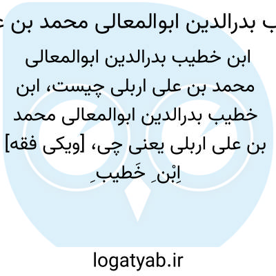 [ویکی فقه] اِبْن ِ خَطیب ِ اِرْبِلی، بدرالدین ابوالمعالی محمد بن علی (۶۸۶ - ۷۵۵ق /۱۲۸۷-۱۳۵۴م )، ادیب، شاعر، نویسنده، نحوی و فقیه شافعی است.
