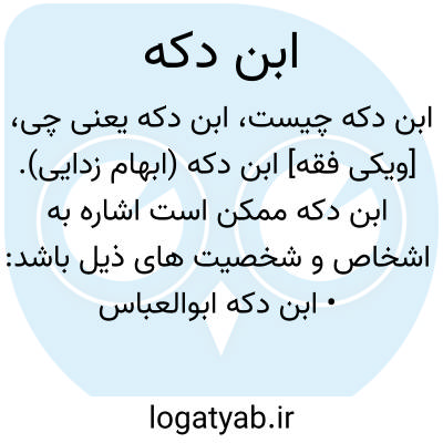 [ویکی فقه] ابن دکه (ابهام زدایی). ابن دکه ممکن است اشاره به اشخاص و شخصیت های ذیل باشد: • ابن دکه ابوالعباس احمد بن محمد اصفهانی، از محدّثین اصفهان در قرن چهارم هجری • ابن دکه ابوجعفر محمد بن حسن معدل اصفهانی، از محدّثین اصفهان در قرن چهارم هجری• ابن دکه ابوعلی حسن بن محمد معدل اصفهانی، از محدّثین قرن سوم و چهارم هجری
