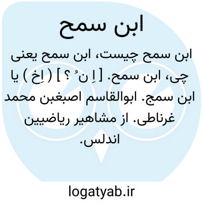 ابن سمح. [ اِ ن ُ ؟ ] ( اِخ ) یا ابن سمج. ابوالقاسم اصبغبن محمد غرناطی. از مشاهیر ریاضیین اندلس. نشأت او بغرناطه بوده است و با اینکه در ریاضی و هیئت مخصص بوده از طب نیز بهره داشته و شاگرد مسلمة مجریطی است. او راست: کتاب المدخل الی الهندسه فی تفسیر کتاب اقلیدس. کتاب المعاملات. کتاب طبیعةالعدد. کتاب التعریف بصورة صنعة الاسطرلاب. کتاب الکبیر فی الهندسه. زیج علی احد مذاهب الهند المعروف بسندهند. وفات او بسنه 420 هَ.ق. بغرناطه و سن اوشمسی 59 بود، در عهد جیوس بن زیری بن مناد صنهاجی.