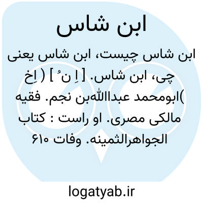 ابن شاس. [ اِ ن ُ ] ( اِخ )ابومحمد عبداﷲبن نجم. فقیه مالکی مصری. او راست: کتاب الجواهرالثمینه. وفات 610 هَ.ق. ( ابن خلکان ).