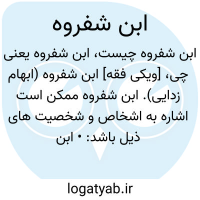 [ویکی فقه] ابن شفروه (ابهام زدایی). ابن شفروه ممکن است اشاره به اشخاص و شخصیت های ذیل باشد: • ابن شفروه اسماعیل بن محمد شفروه اصفهانی، از دانشمندان اصفهان قرن هشتم هجری• ابن شفروه سلیمان بن احمد اصفهانی، معروف به «ابن شفروه»، از فضلای خاندان شفروه• ابن شفروه سلیمان بن شمس الدین اصفهانی، از ادباء و شعرای اصفهان• ابن شفروه رزق اللّه بن هبةاللّه قزوینی اصفهانی، از فقهاء و بزرگان حنفی اصفهان در قرن ششم هجری• ابن شفروه شرف الدین بن هبةاللّه مغربی اصفهانی، واعظ، شاعر و ادیب دانشمند قرن ششم هجری در اصفهان• ابن شفروه عبداللّطیف بن هبةاللّه اصفهانی، از شعرای اصفهان در قرن ششم هجری• ابن شفروه عبیداللّه بن هبةاللّه اصفهانی، واعظ، ادیب و شاعر دانشمند قرن ششم هجری در اصفهان• ابن شفروه عبداللّه بن شرف الدین اصفهانی، از شعراء و ادبای اصفهان در قرن ششم هجری• ابن شفروه حسین بن عبیداللّه قزوینی اصفهانی، از فضلاء و دانشمندان اواخر قرن ششم هجری در اصفهان• ابن شفروه فضل اللّه بن هبةاللّه اصفهانی، از فضلاء و بزرگان اصفهان در قرن ششم هجری• ابن شفروه هبةاللّه بن محمد اصفهانی، از فقهاء و بزرگان خاندان شفروه در اصفهان• ابن شفروه عزالدین اصفهانی، معروف به «عز شفروه» از شعرای اصفهان