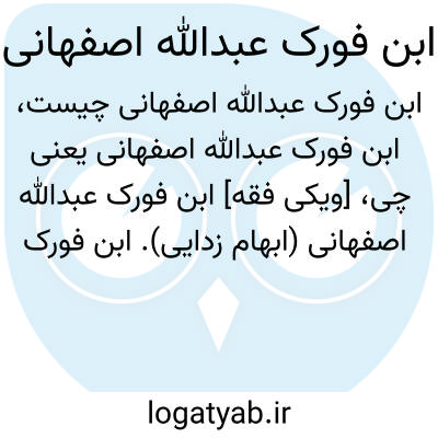 [ویکی فقه] ابن فورک عبدالله اصفهانی (ابهام زدایی). ابن فورک عبداللّه اصفهانی ممکن است اشاره به اشخاص و شخصیت های ذیل باشد: • ابن فورک عبداللّه بن حسن اصفهانی، عبداللّه بن حسن بن فورک، از محدّثین اصفهان• ابن فورک عبداللّه بن محمد اصفهانی، عبداللّه بن محمّد بن مهران بن فورک بن عطاء بن عبداللّه بن مهیار، از محدّثین اصفهان• ابن فورک ابوبکر عبداللّه بن محمد اصفهانی، از محدّثان فقهاء و قاریان قرآن در قرن چهارم هجری در اصفهان