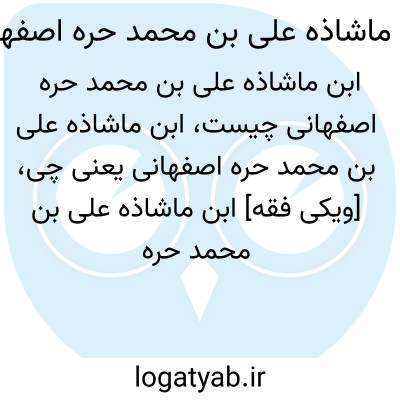 [ویکی فقه] ابن ماشاذه علی بن محمد حره اصفهانی، از فقهاء و متصوّفه اواخر قرن چهارم هجری در اصفهان بوده است.