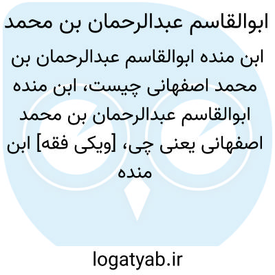 [ویکی فقه] ابن منده ابوالقاسم عبدالرحمان بن محمد اصفهانی، از مشاهیر محدّثین و فقهاء حنبلی اصفهان در قرن پنجم هجری است.