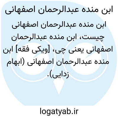 [ویکی فقه] ابن منده عبدالرحمان اصفهانی (ابهام زدایی). ابن منده عبدالرحمان اصفهانی ممکن است اشاره به اشخاص و شخصیت های ذیل باشد: • ابن منده ابومحمد عبدالرحمان بن یحیی اصفهانی، از محدّثین اصفهان در قرن چهارم هجری• ابن منده ابوالقاسم عبدالرحمان بن محمد اصفهانی، از مشاهیر محدّثین و فقهاء حنبلی اصفهان در قرن پنجم هجری