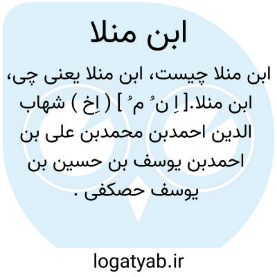 ابن منلا.[ اِ ن ُ م ُ ] ( اِخ ) شهاب الدین احمدبن محمدبن علی بن احمدبن یوسف بن حسین بن یوسف حصکفی. جدّ وی احمدبن یوسف معروف به منلا حاجی از مردم آذربایجان و قاضی القضاة تبریز و از فضلای عهد خویش و صاحب شروح و حواشی و قیود عدیده است. فرزندان و اعقاب او به حلب هجرت کردند و چند تن از آنان در فضل و ادب مشهورند، و صاحب ترجمه معروفترین افراد این خاندان است. او مدتی در حلب نزد پدر خود و ابن الحنبلی مصنف تاریخ حلب تحصیل علم و ادب کرد و سفری با پدربقسطنطنیه شد و از این سفر سفرنامه ای کرد موسوم به الروضةالوردیه فی الرحلة الرومیه و پس به دمشق رفت ونزد نورالدین نسفی و محب الدین تبریزی و ابوالفتوح شبستری بتکمیل علوم خویش پرداخت سپس تدریس مدرسه بلاطیه حلب بدو گذاشتند. او راست: شرحی بر کتاب مغنی اللبیب ابن هشام و شکوی الدمع المراق من سهم العراق. عقود الجمان فی وصف نبذة من الغلمان. رسالة طالبة الوصال من مقام ذلک الغزال. و اشعاری نیز به زبان عرب دارد و او را مردم قریه باتشا در سال 1003 هَ. ق. بکشتند. پسر او شمس الدین محمد کتابی در تاریخ حلب داردو پسر دیگرش ابراهیم درر و غرر را بنظم آورده است.