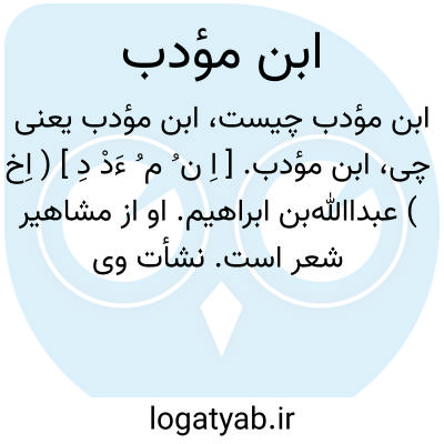 ابن مؤدب. [ اِ ن ُ م ُ ءَدْ دِ ] ( اِخ ) عبداﷲبن ابراهیم. او از مشاهیر شعر است. نشأت وی بمهدیه شهر معروف افریقیه بود. او صنعت کیمیا میورزید و بسیاحت و جهانگردی مایل بود،آنگاه که به صقلیه شد رومیان او را اسیر کردند و پس از مصالحه ثقةالدوله با روم آزاد شد. وی را در مدح ثقةالدوله قصائدی است. وفات ابن مؤدب به سال 414 هَ. ق. بوده است.