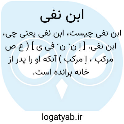 ابن نفی. [ اِ ن ُ ن َ فی ی ] ( ع ص مرکب، اِ مرکب ) آنکه او را پدر از خانه برانده است.