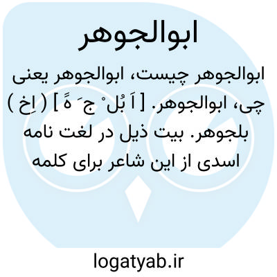 ابوالجوهر. [ اَ بُل ْ ج َ هََ ] ( اِخ ) بلجوهر. بیت ذیل در لغت نامه اسدی از این شاعر برای کلمه فافا شاهد آمده است و ظاهراً از قدمای شعراست: