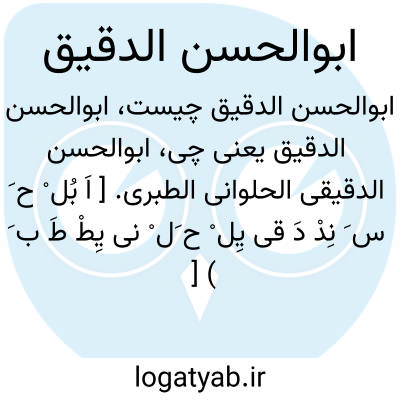 ابوالحسن الدقیقی الحلوانی الطبری. [ اَ بُل ْ ح َ س َ نِدْ دَ قی یِل ْ ح َل ْ نی یِطْ طَ ب َ ] ( اِخ ) او در فقه از پیروان مذهب محمدبن جریر طبریست و او راست: کتاب الشروط. کتاب الرّد علی المخالفین. ( ابن الندیم ).