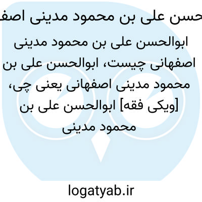 [ویکی فقه] ابوالحسن علی بن محمود مدینی اصفهانی، از محدّثین عامّه اصفهان در قرن چهارم هجری بوده است.