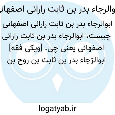 [ویکی فقه] ابوالرّجاء بدر بن ثابت بن روح بن محمّد بن عبدالواحد بن ابی القاسم بن عباس بن جعفر صوفی رارانی، از محدّثین و عرفای اصفهان در قرن پنجم و ششم هجری می باشد.