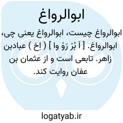 لغت نامه دهخدا ابوالرواغ. [ اَ بُرْ رَوْ وا ] ( اِخ ) عبادبن زاهر. تابعی است و از عثمان بن عفان روایت کند.ابوالرواغ. [ اَ بُرْ رَوْ وا ] ( اِخ ) مجمع الارحبی. محدث است.