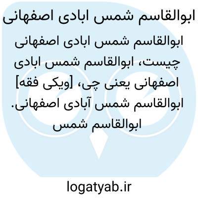 [ویکی فقه] ابوالقاسم شمس آبادی اصفهانی. ابوالقاسم شمس آبادی اصفهانی، از خطّاطان و هنرمندان اصفهان در قرن سیزدهم هجری بوده است.