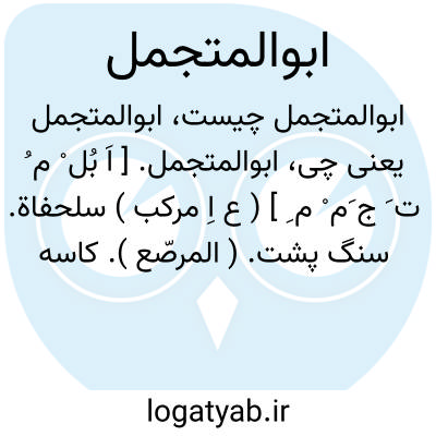 ابوالمتجمل. [ اَ بُل ْ م ُ ت َ ج َم ْ م ِ ] ( ع اِ مرکب ) سلحفاة. سنگ پشت. ( المرصّع ). کاسه پشت. لاک پشت. کشف. لاک. خشک پشت. کشتوک. کشو. چلچله. شیلونه. باخه.