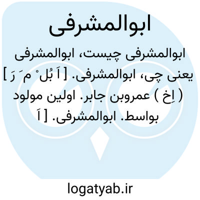ابوالمشرفی. [ اَ بُل ْ م َ رَ ] ( اِخ ) عمروبن جابر. اولین مولود بواسط. ابوالمشرفی. [ اَ بُل ْ م َ رَ ] ( اِخ ) لیث. رجوع به لیث... شود. ابوالمشرفی. [ اَ بُل ْ م َ رَ ]( اِخ ) لیث. شیخ ثوری است و از ابومشعر روایت کند. ابوالمشرفی. [ اَ بُل ْ م َ رَ ] ( اِخ ) لیث واسطی. او از شریک روایت کند.