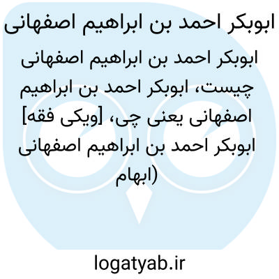 [ویکی فقه] ابوبکر احمد بن ابراهیم اصفهانی (ابهام زدایی). ابوبکر احمد بن ابراهیم اصفهانی ممکن است اشاره به اشخاص و شخصیت های ذیل باشد: • ابوبکر احمد بن ابراهیم زعفرانی اصفهانی، از محدّثین اصفهان• ابوبکر احمد بن ابراهیم کرانی اصفهانی، از محدّثین قرن چهارم هجری در اصفهان• ابوبکر احمد بن ابراهیم بن احمد اصفهانی، از محدّثین اصفهان• ابوبکر احمد بن ابراهیم سمیرمی اصفهانی، از محدّثین اصفهان