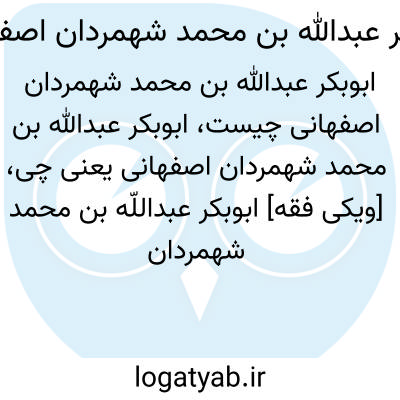 [ویکی فقه] ابوبکر عبداللّه بن محمد شهمردان اصفهانی، از محدّثین عامّه اصفهان در قرن چهارم هجری بوده است.