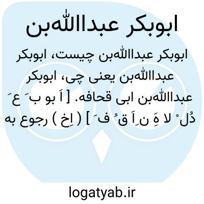 لغت نامه دهخدا ابوبکر عبداﷲبن ابی قحافه. [ اَ بو ب َ ع َ دُل ْ لا هَِ ن ِاَ ق ُ ف َ ] ( اِخ ) رجوع به ابوبکربن ابی قحافه شود.