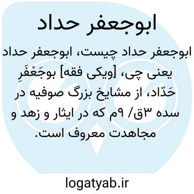 [ویکی فقه] بوجَعْفَرِ حَدّاد، از مشایخ بزرگ صوفیه در سده ۳ق/ ۹م که در ایثار و زهد و مجاهدت معروف است.