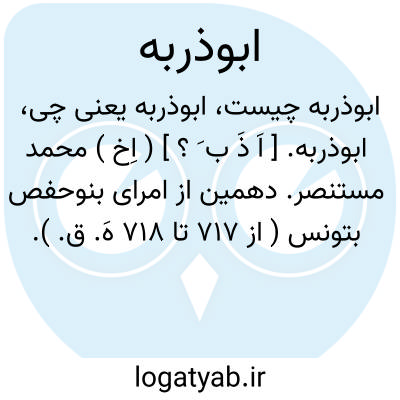 لغت نامه دهخدا ابوذربه. [ اَ ذَ ب َ ؟ ] ( اِخ ) محمد مستنصر. دهمین از امرای بنوحفص بتونس ( از 717 تا 718 هَ. ق. ).