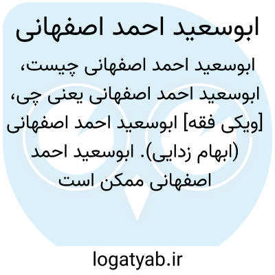 [ویکی فقه] ابوسعید احمد اصفهانی (ابهام زدایی). ابوسعید احمد اصفهانی ممکن است اشاره به اشخاص و شخصیت های ذیل باشد: • ابوسعید احمد بن محمد بغدادی اصفهانی، از محدّثین اصفهان• ابوسعید احمد بن سعید صفار اصفهانی، از محدّثین اصفهان در قرن چهارم هجری