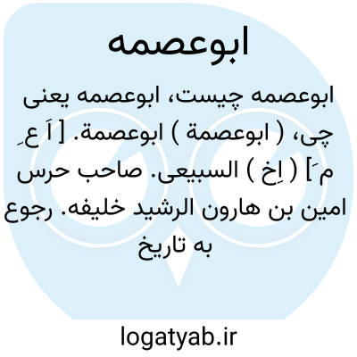 ( ابوعصمة ) ابوعصمة. [ اَ ع ِ م َ] ( اِخ ) السبیعی. صاحب حرس امین بن هارون الرشید خلیفه. رجوع به تاریخ الحکماء قفطی چ لیپزیک ص 144 شود.