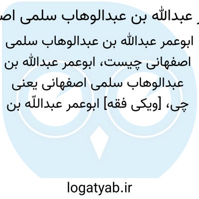 [ویکی فقه] ابوعمر عبداللّه بن عبدالوهاب سلمی اصفهانی، از محدّثین عامّه اصفهان در قرن چهارم هجری بوده است.
