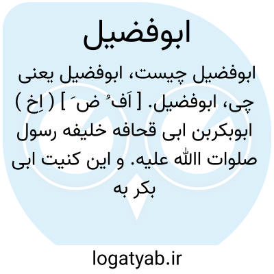 لغت نامه دهخدا ابوفضیل. [ اَف ُ ض َ ] ( اِخ ) ابوبکربن ابی قحافه خلیفه رسول صلوات اﷲ علیه. و این کنیت ابی بکر به روزگار جاهلیت بود.