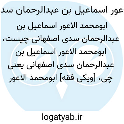 [ویکی فقه] ابومحمد الاعور اسماعیل بن عبدالرحمان سدی اصفهانی، از راویان و مفسرین مشهور قرن دوم هجری در اصفهان بوده است.