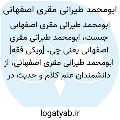 [ویکی فقه] ابومحمد طیرانی مقری اصفهانی، از دانشمندان علم کلام و حدیث در اصفهان بوده است.