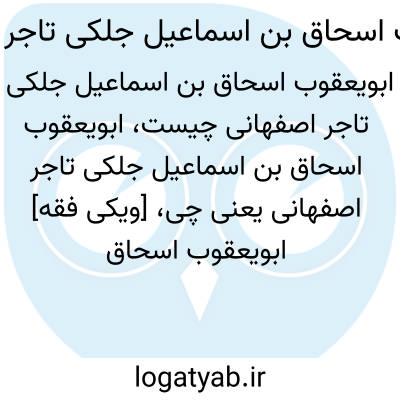 ابویعقوب اسحاق بن اسماعیل بن موسی بن مهران جلکی تاجر، از محدّثین اصفهان در قرن سوم هجری است. از مشایخ موثّق حدیث به شمار می رفته، و از جمعی از راویان بصره و ابی الولید، سهل بن بکار، معاذ بن اسد، ابی الرّبیع، اسماعیل بن اویس و سعید بن منصور نقل حدیث نموده است. صاحب عنوان در سال ۲۷۹ق وفات یافت.