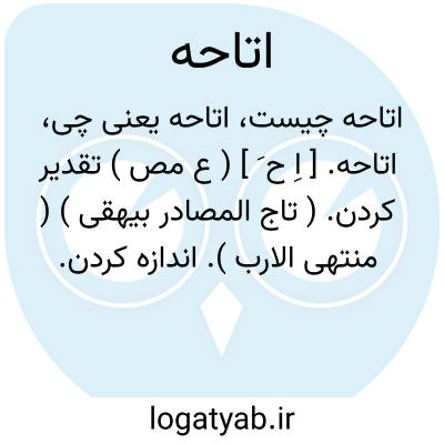 لغت نامه دهخدا اتاحه. [ اِ ح َ ] ( ع مص ) تقدیر کردن. ( تاج المصادر بیهقی ) ( منتهی الارب ). اندازه کردن.