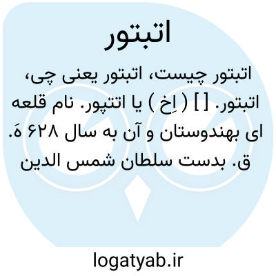 اتبتور. [ ] ( اِخ ) یا اتتپور. نام قلعه ای بهندوستان و آن به سال 628 هَ. ق. بدست سلطان شمس الدین ایلتمش فتح شد. رجوع به حبط1 ص 416 شود.