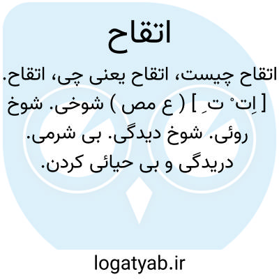 لغت نامه دهخدا اتقاح. [ اِت ْ ت ِ ] ( ع مص ) شوخی. شوخ روئی. شوخ دیدگی. بی شرمی. دریدگی و بی حیائی کردن.