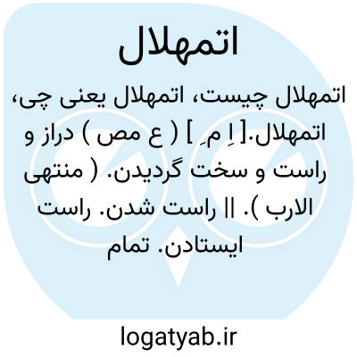 اتمهلال.[ اِ م ِ ] ( ع مص ) دراز و راست و سخت گردیدن. ( منتهی الارب ). || راست شدن. راست ایستادن. تمام قدشدن. || آرمیدن. || سست شدن.