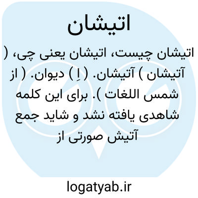 لغت نامه دهخدا ( آتیشان ) آتیشان. ( اِ ) دیوان. ( از شمس اللغات ). برای این کلمه شاهدی یافته نشد و شاید جمع آتیش صورتی از آتش باشد که مجازاً بمعنی دیو آمده است.
