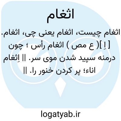 اثغام. [ اِ ]( ع مص ) اثغام رأس؛ چون درمنه سپید شدن موی سر. || اِثغام اناء؛ پر کردن خنور را. || اثغام کسی؛ بخشم آوردن او را. || شاد کردن. || اثغام وادی؛ درمنه رویانیدن آن.