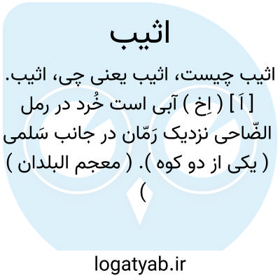 اثیب. [ اَ ] ( اِخ ) آبی است خُرد در رمل الضّاحی نزدیک رَمّان در جانب سَلمی ( یکی از دو کوه ). ( معجم البلدان ) ( مراصد ).