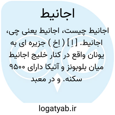 اجانیط. [ اِ ] ( اِخ ) جزیره ای به یونان واقع در کنار خلیج اجانیط میان بلوبونز و آتیکا دارای 9500 سکنه. و در معبد اجانیط پیکرهای بسبک قدیم یافت شده است و فعلا در موزه مونیخ است. و سبک حجاری اجانیط اقدم سبکهای حجاری یونان است. و از آن جزیره است فولس الاجانیطی، جرّاح معروف یونانی.