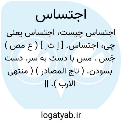اجتساس. [ اِ ت ِ ] ( ع مص ) جَس. مس با دست به سر. دست بسودن. ( تاج المصادر ) ( منتهی الارب ). || چریدن به دهان: اجتست الابل الکلأَ؛ چریدند شتران گیاهها را به دهنهای خود. ( منتهی الارب ).