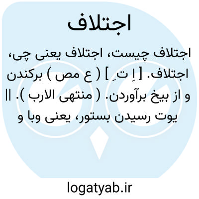 لغت نامه دهخدا اجتلاف. [ اِ ت ِ ] ( ع مص ) برکندن و از بیخ برآوردن. ( منتهی الارب ). || یوت رسیدن بستور، یعنی وبا و مرگامرگی پدید آمدن میان آنان.