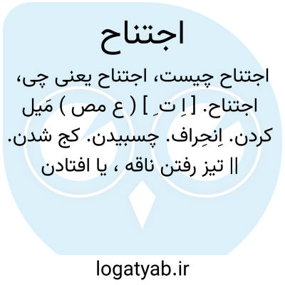 اجتناح. [ اِ ت ِ ] ( ع مص ) مَیل کردن. اِنحِراف. چسبیدن. کج شدن. || تیز رفتن ناقه، یا افتادن پاهای وی زیر دستها بجهت تیزروی. || اعتماد کردن اسب در دویدن بر یک جانب. || میل دادن کسی را. چسبانیدن. کج کردن. || گشاده داشتن دو بازو را در سجده. اعتماد کردن بر دو کف دست در سجده و گشاده داشتن هر دو بازو را. تَجَنﱡح.