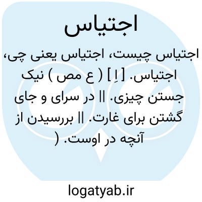 اجتیاس. [ اِ ] ( ع مص ) نیک جستن چیزی. || در سرای و جای گشتن برای غارت. || بررسیدن از آنچه در اوست. ( منتهی الارب ).