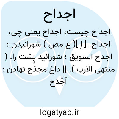 اجداح. [ اِ ]( ع مص ) شورانیدن: اجدح السویق؛ شورانید پِسْت را. ( منتهی الارب ). || داغ مِجدَح نهادن: اَجْدَح َ الابل؛ داغ مِجدَح نهاد بر ران شتر. ( منتهی الارب ).