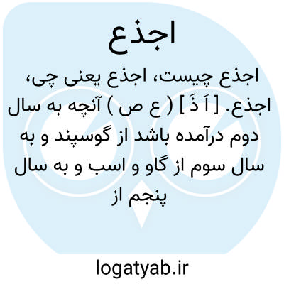 اجذع. [ اَ ذَ ] ( ع ص ) آنچه به سال دوم درآمده باشد از گوسپند و به سال سوم از گاو و اسب و به سال پنجم از شتر. ( صراح ).