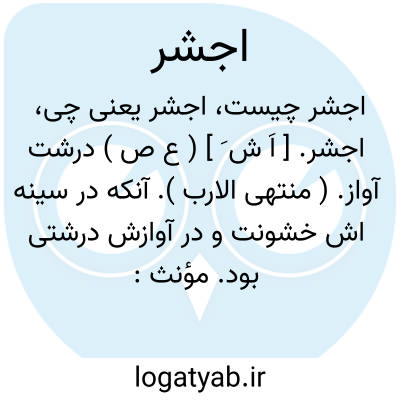 اجشر. [ اَ ش َ ] ( ع ص ) درشت آواز. ( منتهی الارب ). آنکه در سینه اش خشونت و در آوازش درشتی بود. مؤنث: جَشْراء. ج، جُشر.