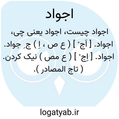 لغت نامه دهخدا اجواد. [ اَج ْ ] ( ع ص، اِ ) ج ِ جواد.اجواد. [ اِج ْ ] ( ع مص ) نیک کردن. ( تاج المصادر ).